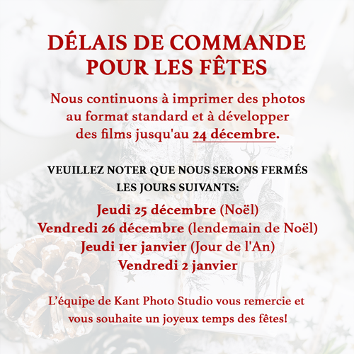 Kant offre tous types de finition photo, que ce soit des photos traditionnelles ou numériques. Nous nous spécialisons à offrir des services sur mesure, que vous soyez un amateur ou un professionnel aguerri. Nous sommes situés en plein coeur de Montréal, passez nous voir pour tous vos besoins photographiques!